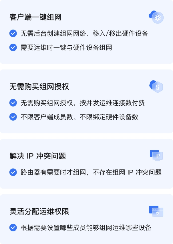 举例来说,即便企业需要管理的设备点位多达几十甚至上百台,但如果日常仅需1到2位工程师同时进行远程作业,那么仅需购买1到2个通道的费用即可覆盖全网运维需求。