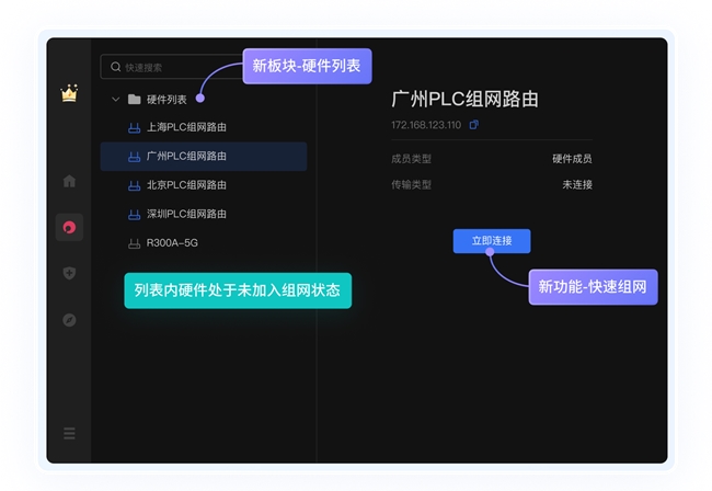 最后,运维工程师只需登录蒲公英客户端,在列表中点击对应硬件连接,即可立即开展工作,连接操作和本地局域网一致,无需复杂操作。