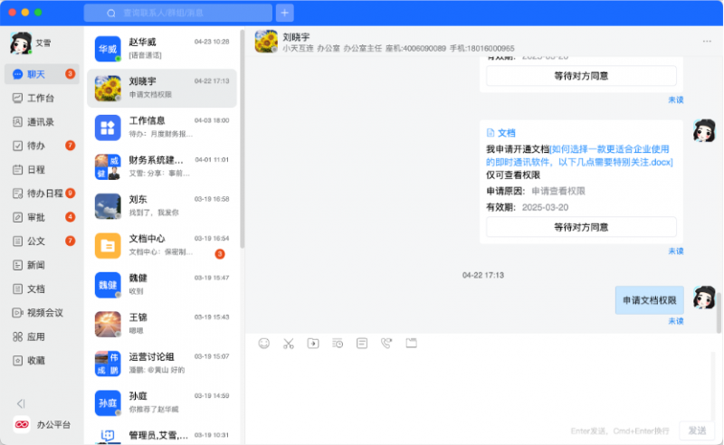 小天互连即时通讯平台,作为企业私有化的即时通讯、文档协作平台,支持企业实现数字化权限精细化管控,大幅提升文档管理效率,确保信息安全无虞,避免泄露与篡改风险,同时优化资源配置,为企业创新发展提供强有力的安全保障。