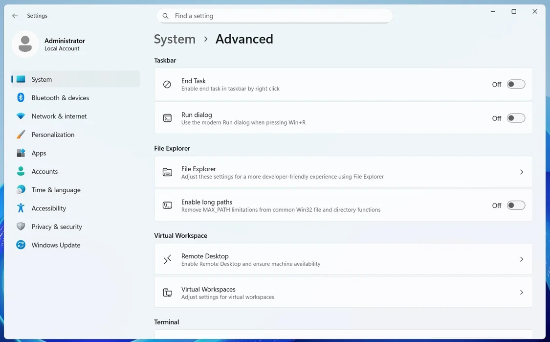 感兴趣的用户可通过最新的 Windows Server Bulid 26534 预览版进行体验,不过需要手动开启:需要转到“设置” > “系统” > “高级”,然后打开“运行对话框”。