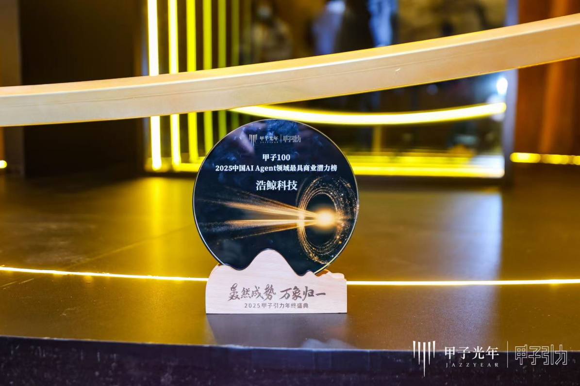 会上,浩鲸科技凭借 AI Agent 技术研发及产业落地的全方位卓越表现,荣膺「2025 中国 AI Agent 最具商业潜力企业」称号;其旗下企业AI操作系统“鲸智百应”,也凭借精准的产业定位与实践价值,成功入选甲子光年《2025 年人工智能产业 30 条判断》推荐案例。