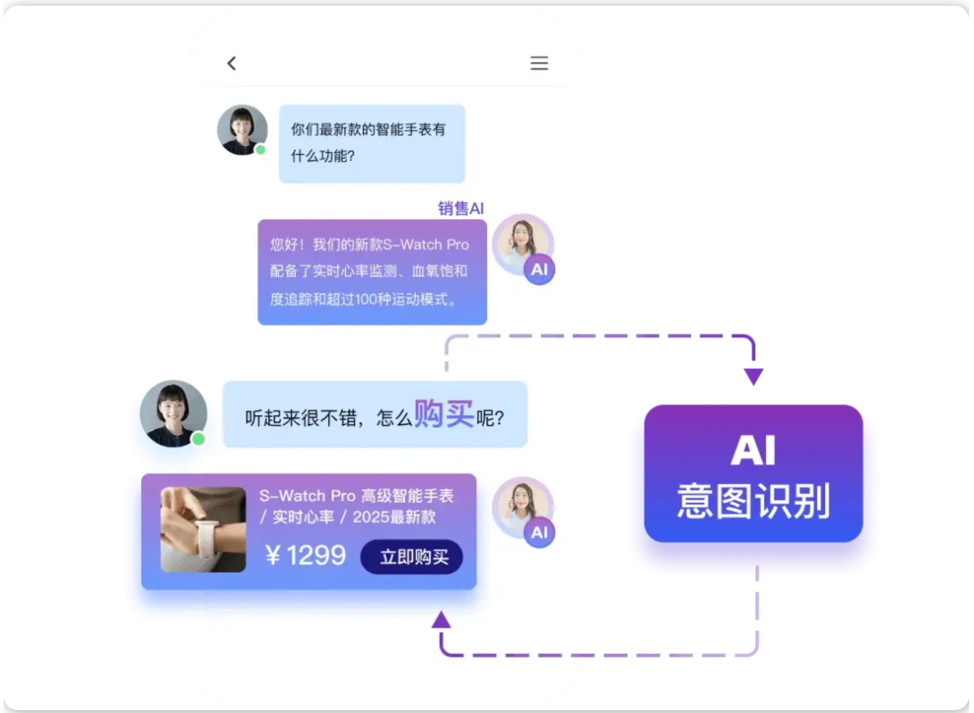 更重要的是,系统能通过实时分析对话上下文,智能判别用户的真实意图与购买意向阶段,并将关键信号通过 Webhook 即时同步至企业的 CRM 或销售系统。这不仅让人工销售能无缝介入最有价值的环节,更让运营流程从单向触达升级为“洞察-互动-转化-分析”的智能闭环,真正驱动业务增长。