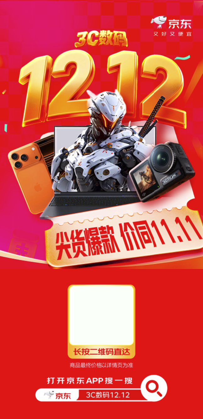 12.12将至,京东率先点燃3C数码年终盛典,携“价同11.11”的爆款阵容强势来袭!更有政府补贴、以旧换新等多重优惠叠加,降低购机、换新与升级门槛。从高端旗舰到电竞装备,从学习办公到智能穿戴,全场景覆盖、优惠全线释放,为你打造一场真正触手可及的科技焕新盛宴。现在打开京东,搜索“3C数码12.12”,直达优惠主场,抢先锁定超值福利!