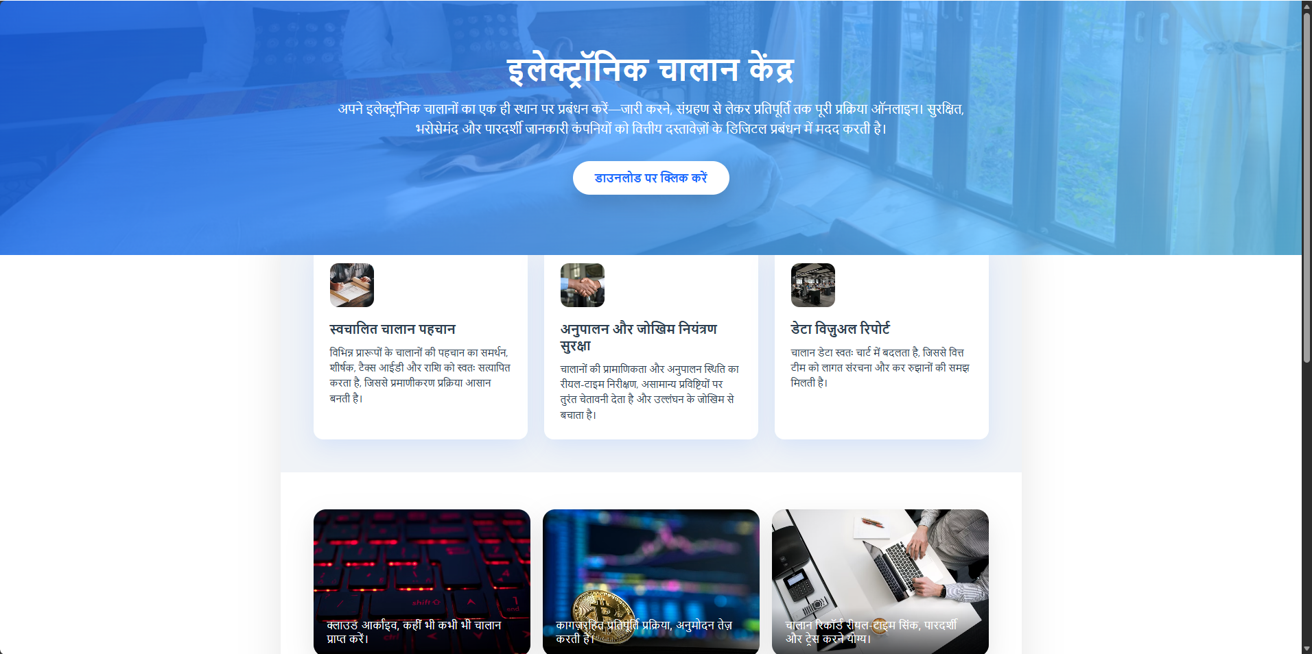 而点击“查看/下载电子发票”,则会跳转访问到一个明显是AI生成的网页。这类网页的外观大同小异,而且往往带有大片的蓝色背景。此外,网页地址栏中显示的地址也并非“诺诺发票”的官方网址。