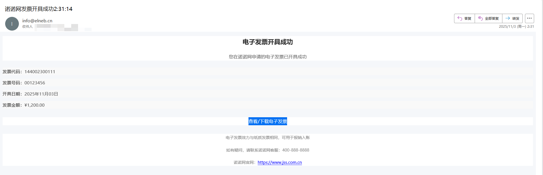 在11月初,微步在线捕获到了以“诺诺网发票开具成功”为主题的钓鱼邮件: