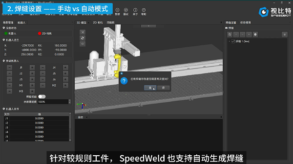 自动模式:对于规则工件,在SpeedWeld软件主界面右键点击“自动生成焊缝”,系统将自动提取所有焊缝轨迹并编号,同时支持根据实际生产需求对生成的焊缝进行修改或剔除。例如在一个箱体结构上,几十条焊缝可在几秒内全部生成,大幅节省人工操作时间。