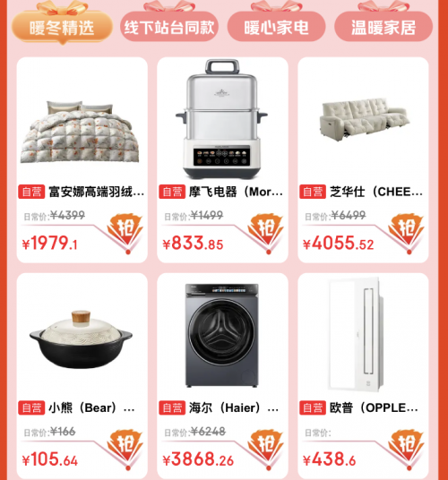 岁末焕新正当时,家的美好未来已来。12月11日晚8点锁定京东,爆款家电家居低至1折,机会不容错过,一站式升级你的理想生活。现在就打开京东APP搜索“冬家好物”“天天抢五折”,提前锁定心仪好物,给家一个更温暖的冬天。
