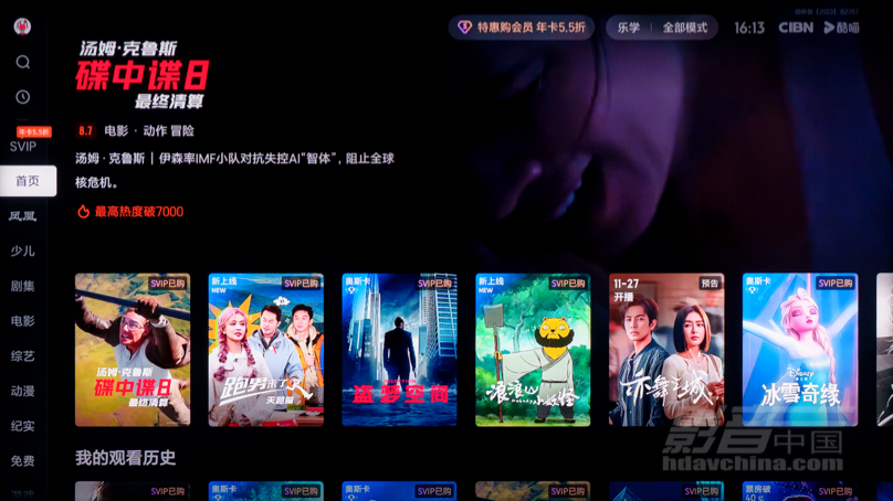 在画质优化与认证方面,海信与爱奇艺深度合作,为U7S Pro联合开发了"帧绮映画MAX"专属显示模式,用户在观看爱奇艺平台的电影和电视剧内容时,系统会自动启用这一经过专业调校的画质模式。值得一提的是,U7S Pro还获得了腾讯"臻彩MAX+"认证,并内置了由DTS与IMAX共同打造的IMAX Enhanced专属电影内容库。这意味着用户在家中即可享受到独具IMAX特色、并符合DTS严格标准的沉浸式影音体验,重温经典的IMAX电影作品。