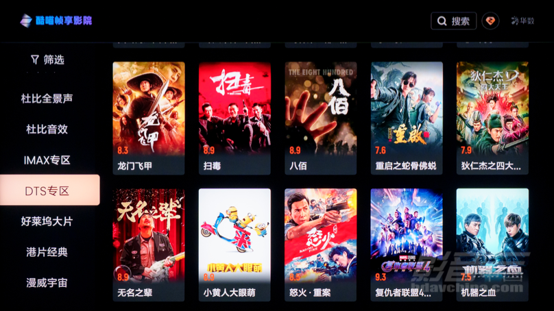 酷喵帧享影院平台下的DTS和DTS:X音效影视内容库
