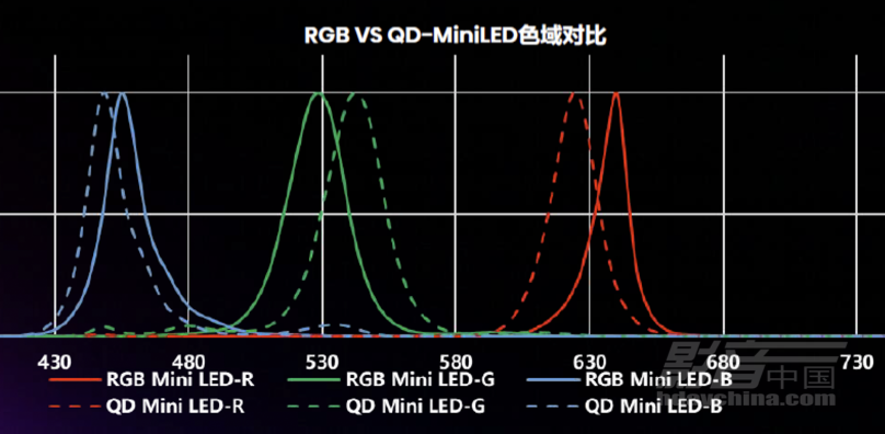 海信RGB-Mini LED芯片具备比量子点材料更窄的半波宽