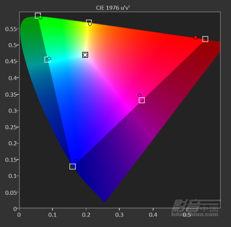 通过Portrait Displays Calman 2025专业色彩测量软件,基于2006 CIE 170-1 2度 CMF色彩匹配函数,IMAX模式的色域覆盖范围接近100% BT.2020