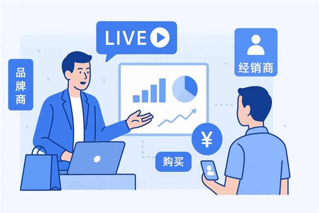 对准它的下游渠道,由品牌提供直播内容、营销资源,但由经销商出面主持,以“帮你卖货”的名义发起。