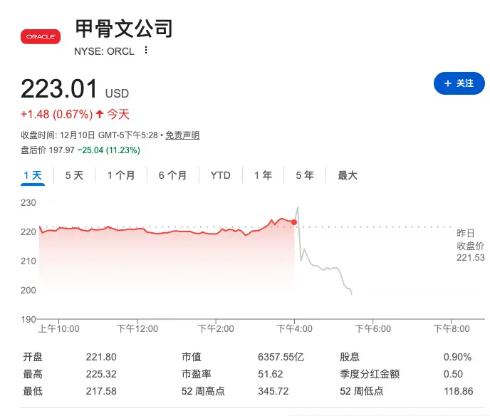 甲骨文业绩不及预期,资本开支比预期多约150亿美元,盘后重挫超10%