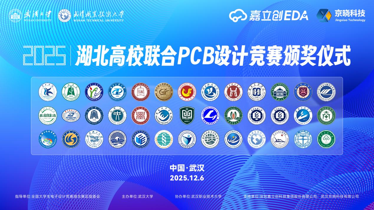 为推动国产化 EDA 工具与实践教学深度融合,搭建 “教育链 - 人才链 - 产业链 - 创新链” 有机衔接的实践平台,本次联赛由武汉大学主办、全国大学生电子设计竞赛湖北赛区组委会指导、武汉职业技术大学协办,深圳嘉立创科技集团股份有限公司与武汉京晓科技有限公司提供技术支持。