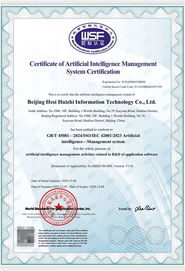 近期,合思正式通过《ISO/IEC 42001人工智能管理体系认证》,成为财务数智化产品与服务领域率先接轨该国际标准的标杆企业。这是全球首个人工智能管理领域的国际标准,聚焦于伦理治理、数据安全、算法透明、全生命周期管理等四大核心维度。