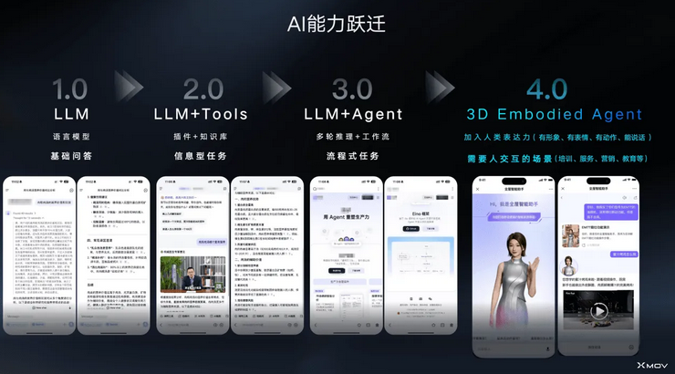 而第四阶段,也是魔珐科技的关键突破。在智能体的基础上,赋予AI“人的表达能力”——形象、语音、动作、表情,让大模型“长出身体”,化身为真正意义上的“数字人智能体”。