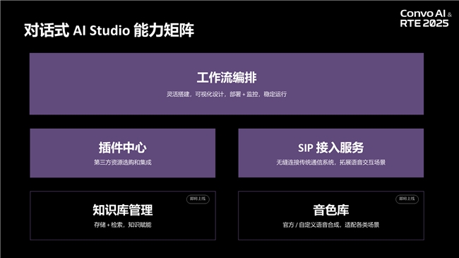 在对话式 AI 应用场景爆发的当下,开发门槛高、模型参数调优复杂、多供应商资源整合繁琐等行业痛点,成为了很多企业与开发者的烦恼。在 RTE2025 实时互联网大会上,声网正式发布了对话式 AI Studio 1.0,以 “零代码生产级智能体工厂” 为定位,直击行业痛点,凭借可视化编排、全流程模块化设计与生态化资源整合,让不懂代码、不熟悉音频参数的使用者也能在 1 小时内打造专属智能体,打破技术与效率的双重壁垒。