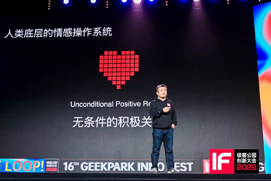 2025年12月6日,在【极客公园IF 2026创新大会】上,心言集团创始人任永亮阐述了他对下一代情感陪伴机器人的构想。聚光灯下,这位CEO言辞恳切,眼神坚定。很少有人知道,站在台上谈论“共感体”与“无条件的积极关注”的科技创业者,曾经是一个在情感旷野中迷失方向的“县城学霸”。