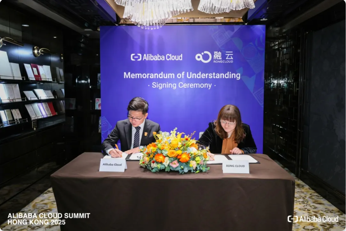 11 月 26 日,融云与阿里云在“阿里云香港峰会 2025”上正式签署合作备忘录,阿里云智能港澳区总经理袁志明先生与融云 CEO 董晗女士出席了签约仪式。