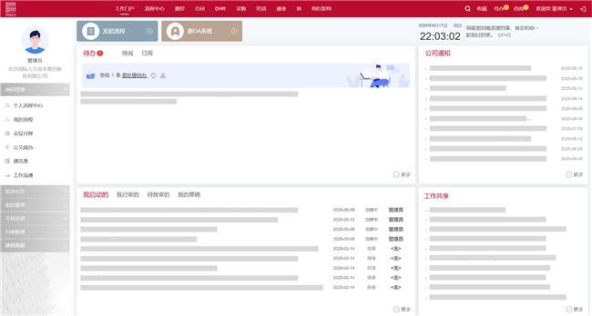 全新工作门户,汇集个人事宜、公司通知、工作共享、其他应用系统入口,让公司数千员工通过专属工作台即可清晰获取流程待办、工作通知、知识文档,从过去“人找事”模式升级到“事找人”模式,通过“聚事为人”提升组织协同效能。