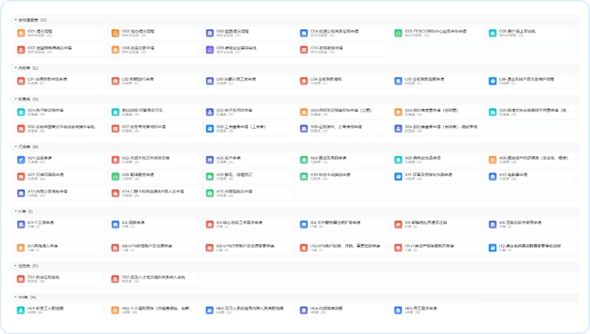 新平台具备强大的流程引擎能力,能够支持企业内外各种复杂流程的顺畅运行和集成,覆盖协作呈报类、内控类、行政类、党务类、HR类、IT类、采购类、印章类、档案类等10+领域,例如印章类流程,覆盖工会章、财务专用章、合同章、电子签用印等流程申请,均实现全线上化、标准化流转。员工提交申请后,系统自动按预设规则推送审批节点,全程留痕、权责清晰,有效规范了企业内部管控。