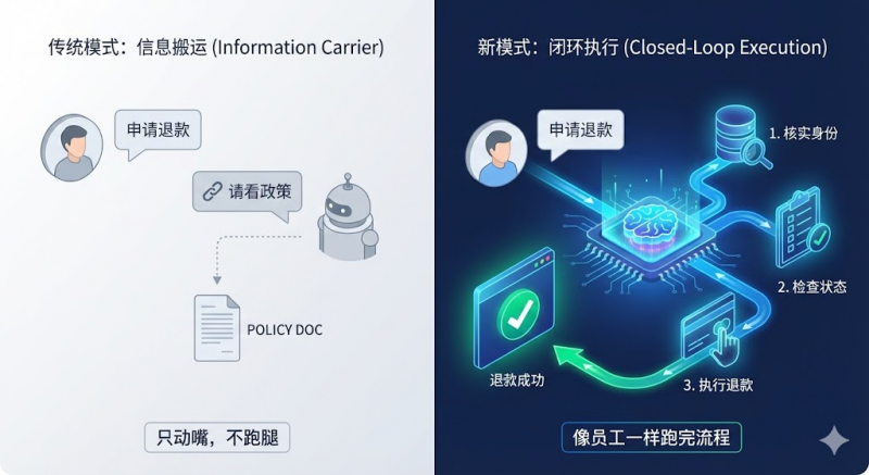 答案在于底层能力的根本性跨越。从 Chatbot 到 Agent,AI 不再是单纯靠关键词去“猜答案”,而是真正学会了像员工一样去“跑流程”。