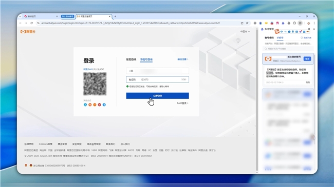 洋葱头浏览器将这一环节直接前置到使用端:当平台触发验证码校验时,验证码会直接显示在浏览器右侧插件弹窗中,无需等待人工转发,复制即可完成登录。