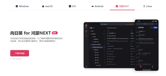 除此之外,在2025年6月,向日葵还在华为开发者大会上展示了鸿蒙原生适配能力。作为首批完成鸿蒙PC与移动端原生适配的远程控制软件,向日葵实现了无需兼容层即可在华为终端上流畅运行。