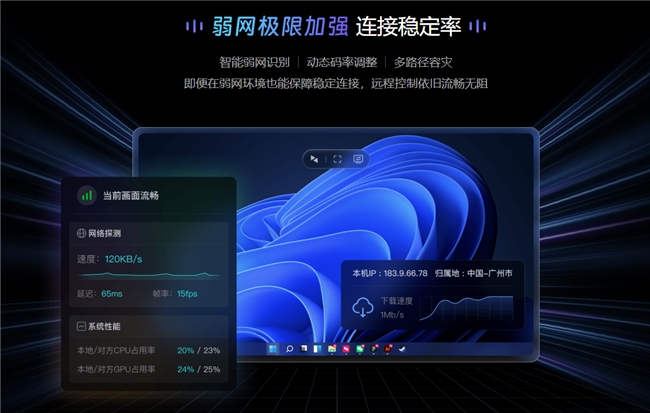 此外即使是在移动网络等弱网环境下,向日葵的智能算法也能识别出我们的网络状态并且动态调整编解码策略,保持操作的流畅性。这种技术优势使其在远程游戏、移动办公等场景下表现突出。