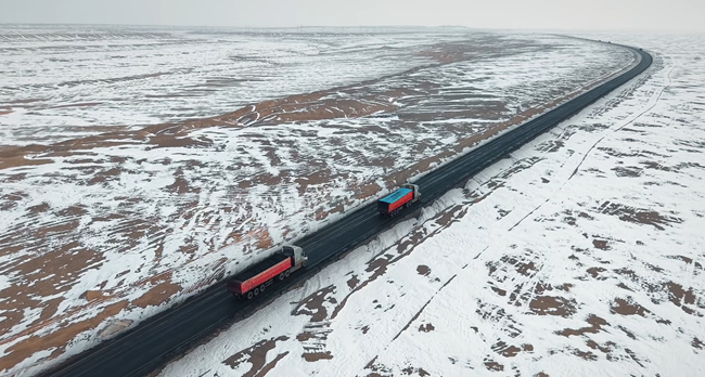 在新疆哈密戈壁腹地、严寒风雪交织的复杂环境下,深向科技智能编队重卡队列已在煤炭运输干线上实现常态化测试运营,覆盖哈密大南湖矿厂至电厂的完整运输链路。