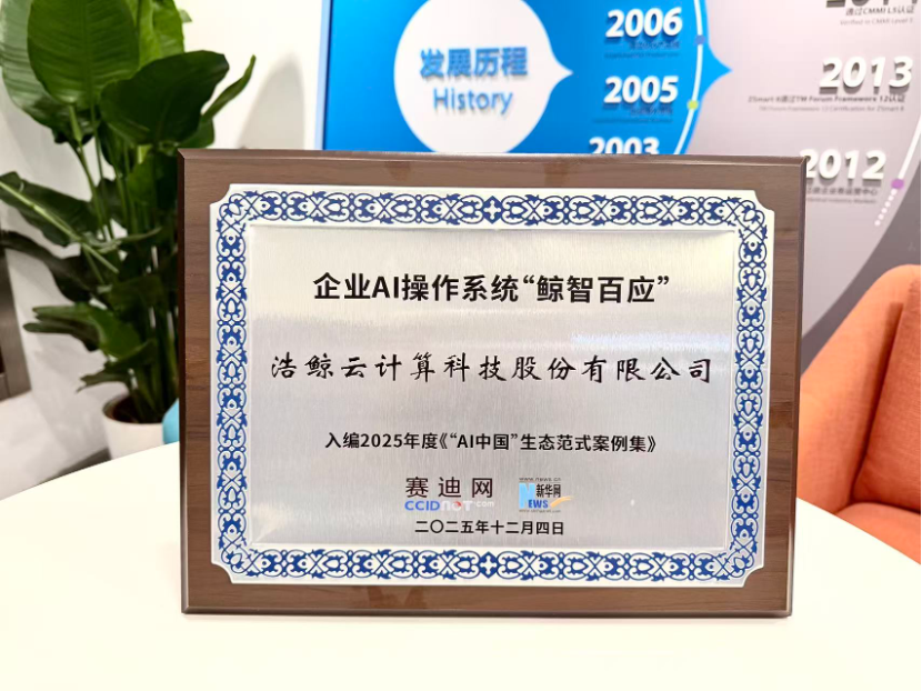 双重权威认证,是对浩鲸科技AI技术实力的肯定,更彰显了浩鲸科技在国家“人工智能+”行动中的生态价值与产业影响力。作为AI产品标杆,“鲸智百应” 深度贴合业务场景,推动企业持续向智能化演进升级,为千行百业转型提供可落地的系统级方案。立足 “十五五” 新起点,浩鲸科技也将持续以技术创新为引擎,深耕产业落地,成为推动人工智能与实体经济深度融合的关键力量。