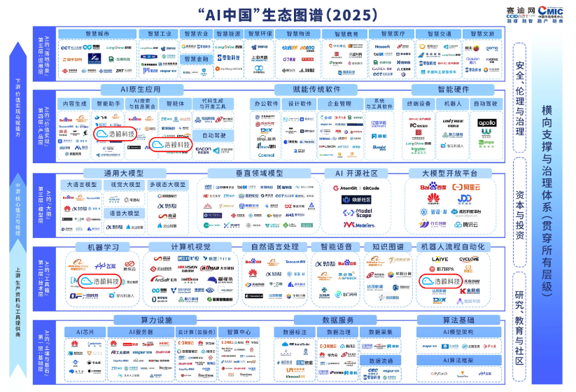 在核心平行论坛——“AI中国”生态范式论坛上,浩鲸科技重磅打造的企业AI操作系统“鲸智百应”凭借领先理念和创新能力,成功入选《“AI中国”生态范式案例集》行业典范;浩鲸科技全栈AI技术实力获赛迪智库《2025“人工智能+”产业生态全景图谱》权威认证。
