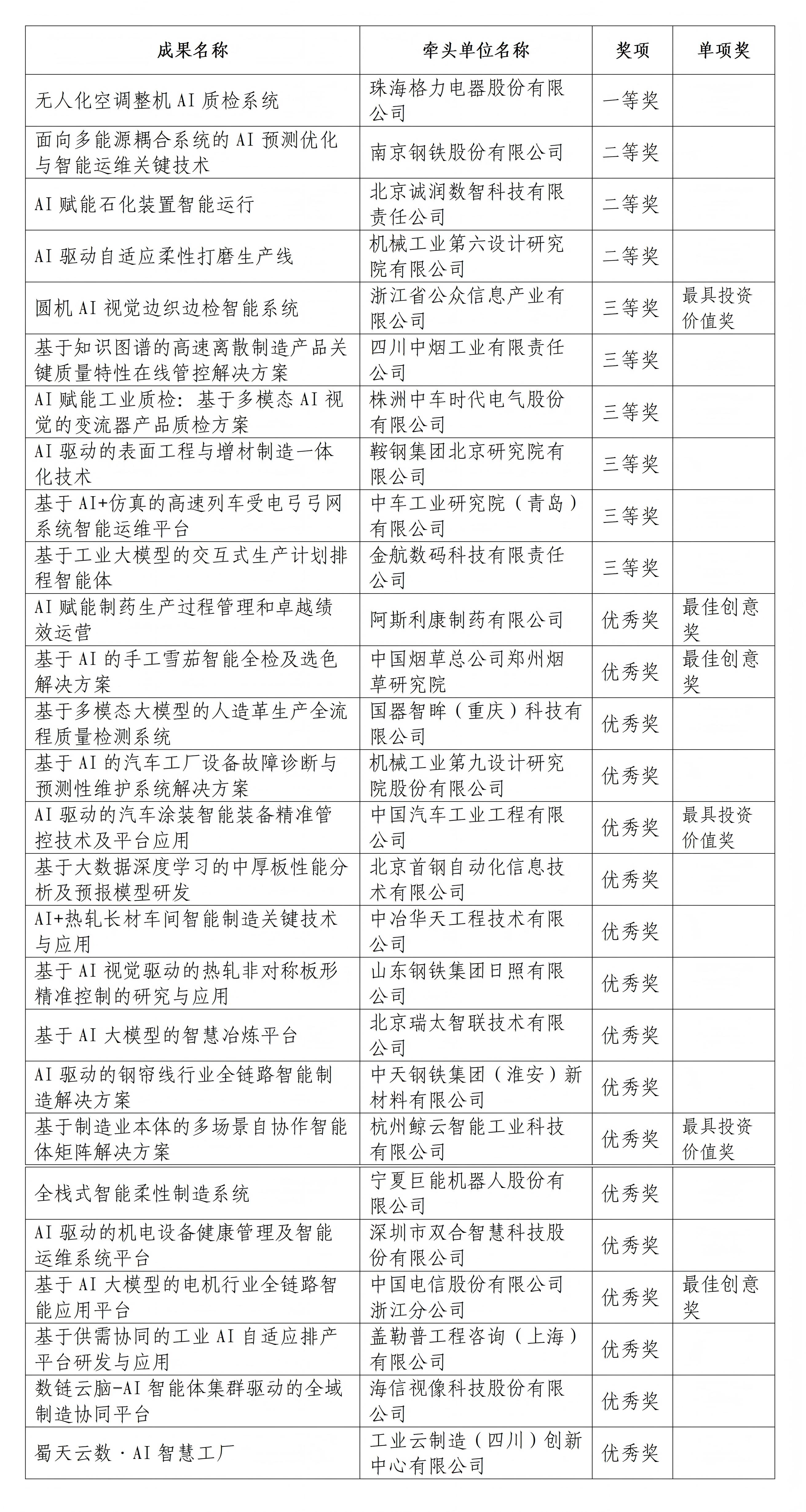 附件:“AI+制造”解决方案赛道获奖企业名单