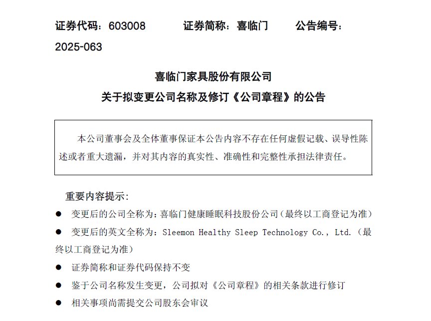 然而这些年,喜临门的全称始终是“喜临门家具股份有限公司”。也许有人并不在乎一家公司的全名:买床垫的人知道牌子,买股票的人知道简称,足矣。但业界在乎,资本市场也在乎。