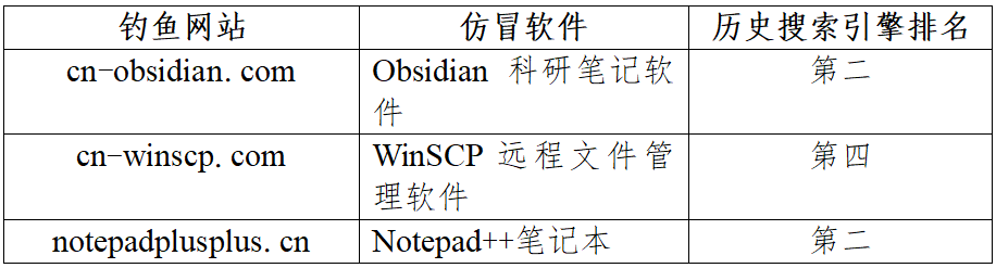 表1 “黑猫”团伙本次钓鱼相关网站