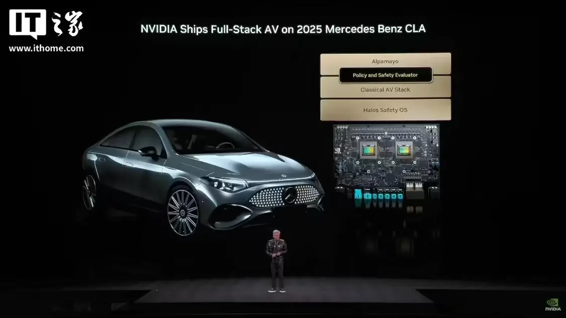 在算法层面,英伟达采用独特的“双系统”安全策略:一套是基于“端到端”视觉语言模型的 AI 系统,负责感知环境与规划路径;另一套则是基于严格规则的“安全栈”,用于在 AI 决策不确定时(如遇到停止标志)强制接管车辆,确保行车安全。