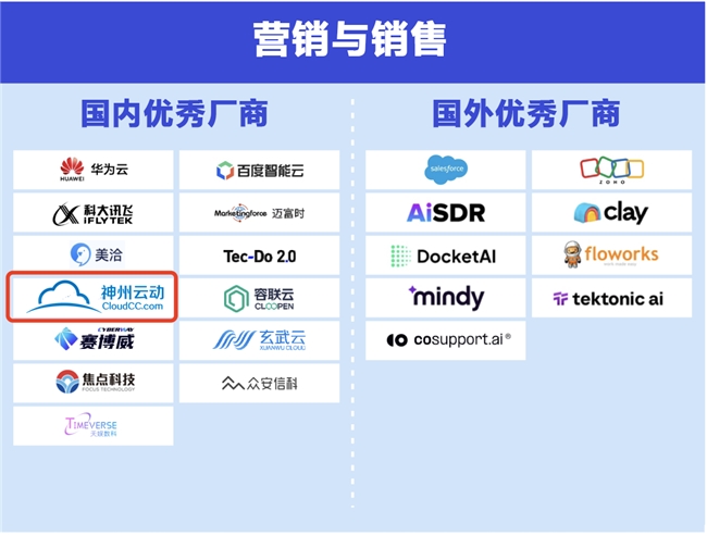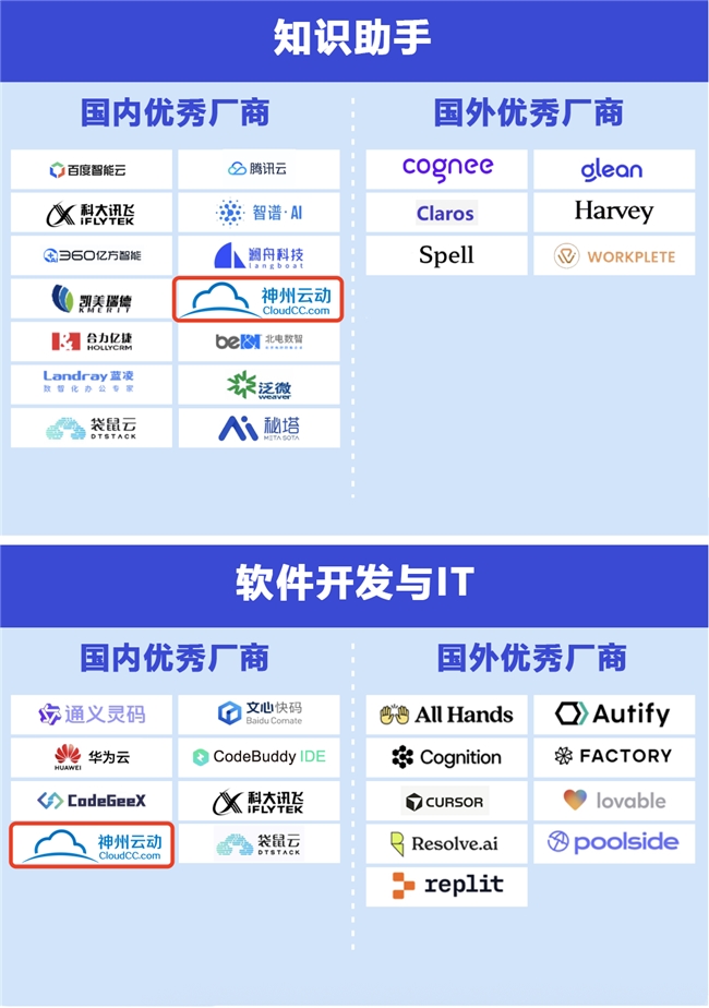 本图谱旨在以严谨的商业化与技术性标准,为读者提供一份真正反映市场实力与演进方向的权威参考,助力企业家、技术决策者与行业投资者在AI Agent的浪潮中精准定位,智赢未来。神州云动CloudCC AI成功入选多个行业场景及应用图谱。