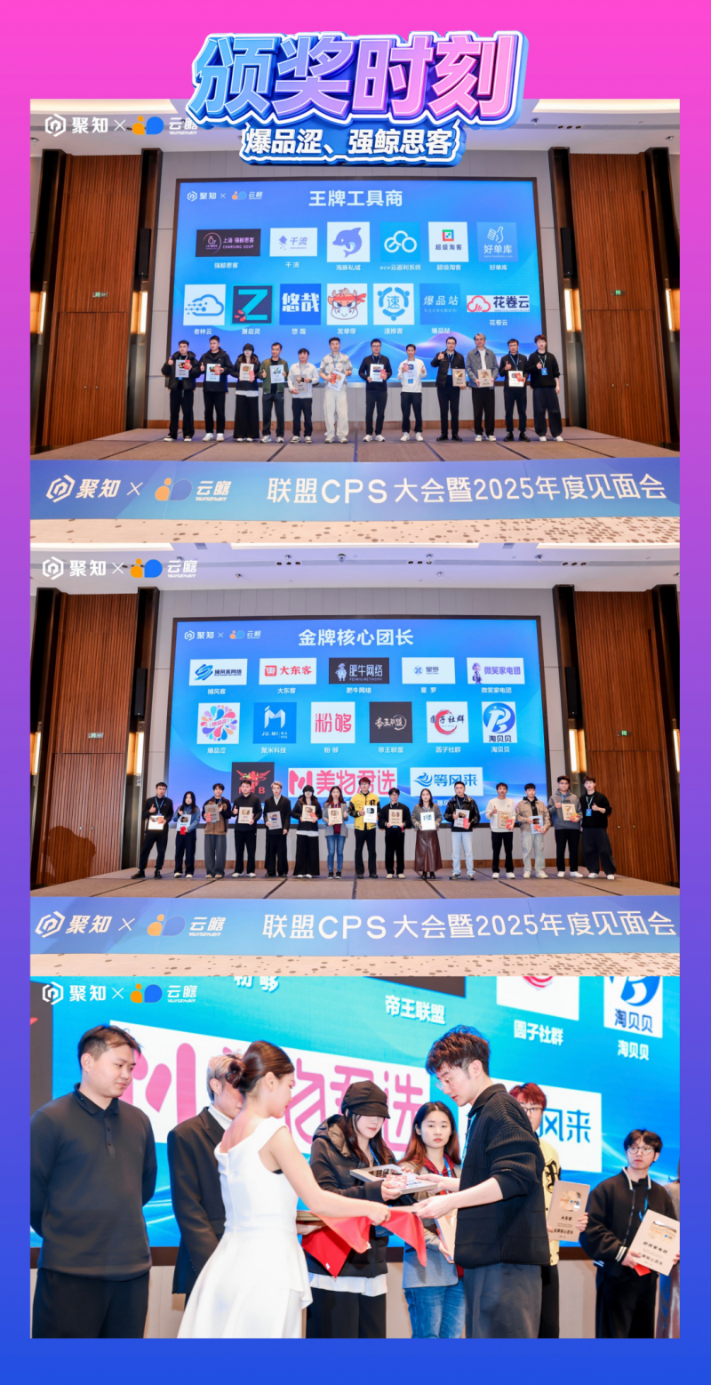 值得关注的是,这已是强鲸思客连续两年斩获这两项行业重磅殊荣。在行业竞争日趋激烈、创新要求持续提升的背景下,双重荣誉的蝉联,不仅是聚知电商CPS大会对企业综合实力的高度认可,更彰显了强鲸思客在电商CPS工具服务与团长撮合业务领域的稳定竞争力与深厚行业影响力。