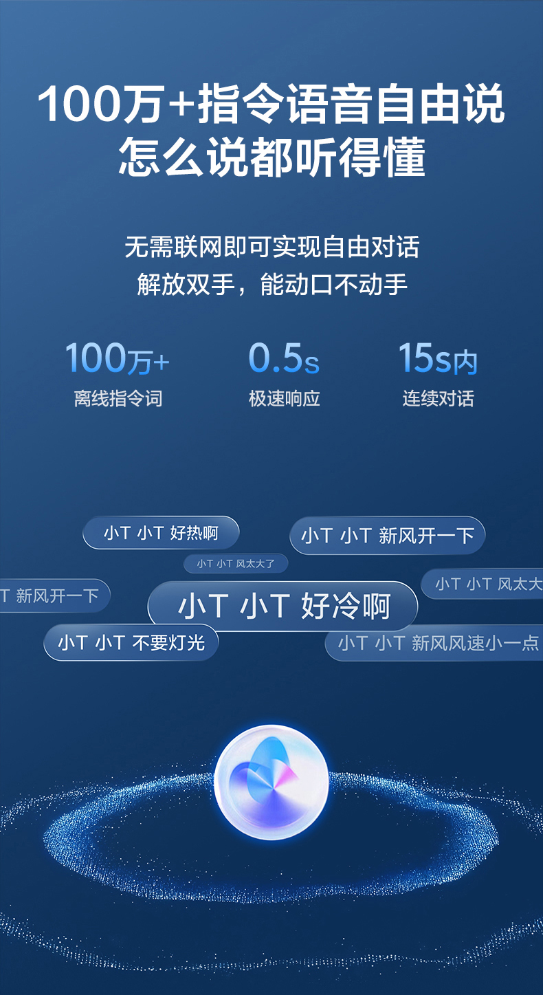 TCL 小蓝翼P7 Ultra AI健康空调的AI语音控制支持100万+指令语音自由说,响应迅速且无需联网,搭配动态表情交互,让人机互动更具温度;超省电AI大数据模型算法2.0则实现至高40%的省电效果,5.60的APF值远超国家一级能效标准,全年可省电286度。