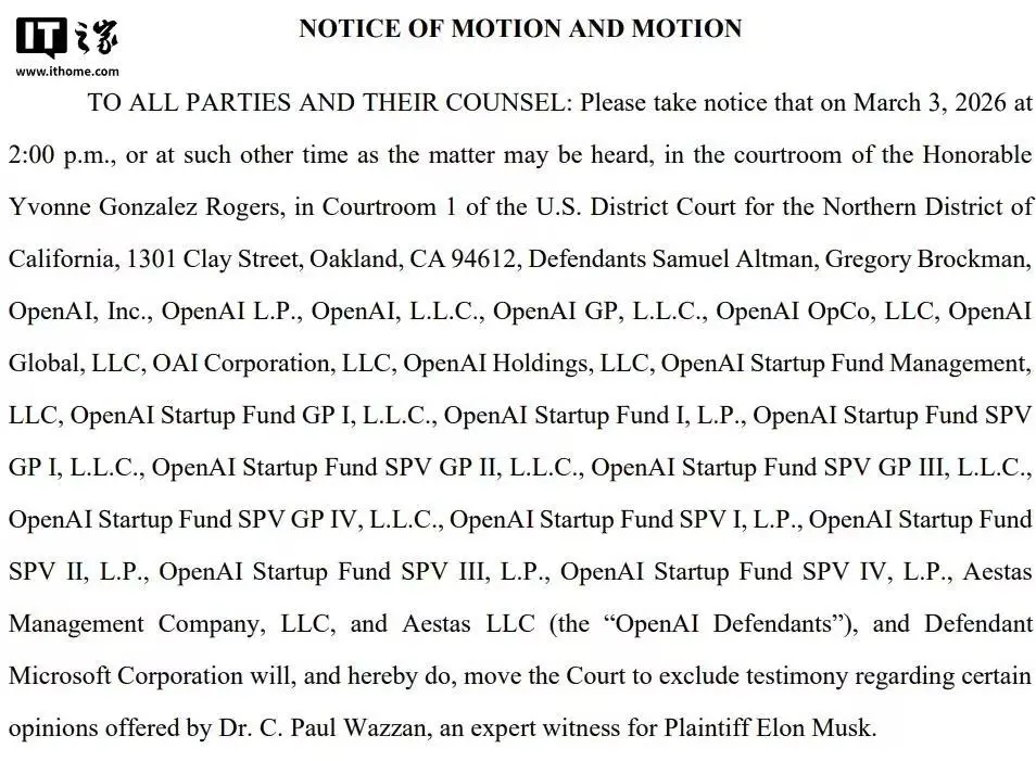 Wazzan 承认其计算模型“相当独特”,在此前相似案例中无法找到依据。微软和 OpenAI 随即提交动议,要求法庭排除 Wazzan 的证词,理由是其计算逻辑完全是为了迎合马斯克而“被发明出来的”。