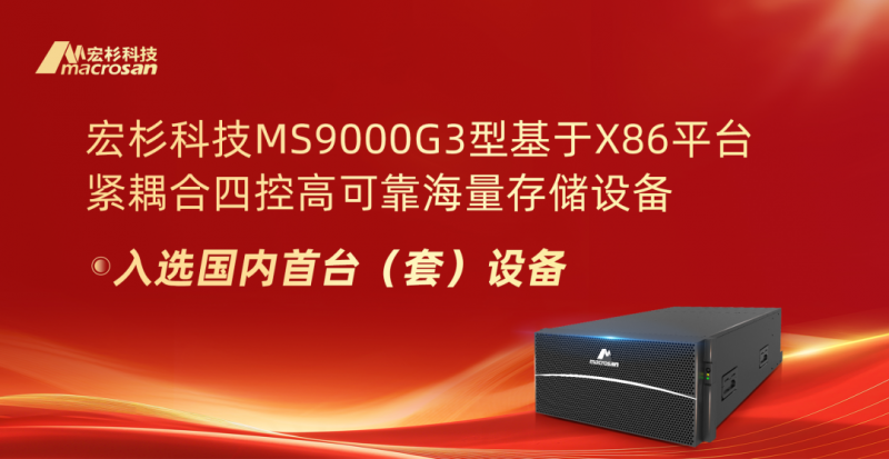 近日,浙江省经济和信息化厅发布2025年度首台(套)装备认定结果公示,宏杉科技自主研发的“MS9000G3型基于X86平台紧耦合四控高可靠海量存储设备”成功入选,被认定为“国内首台(套)装备”,标志着宏杉科技在高端存储领域的技术创新实力再获权威认可。