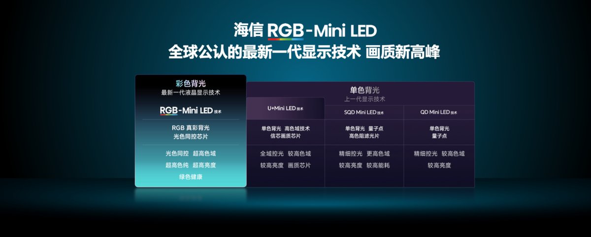 在高端电视市场,很多用户都面临两难选择:想追求极致画质,却要忍受高能耗;想兼顾护眼,又怕色彩失真;QD-Mini LED、SQD-Mini LED等上一代显示技术始终在"不可能三角"难题中妥协。而海信最新发布的RGB-Mini LED影游旗舰E8S,彻底打破了这一僵局,从画质、能效、健康三大维度实现对QD-Mini LED、SQD-Mini LED等上一代显示技术的全面超越,让高端电视不再有短板,成为高端用户首选。