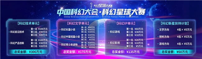 第四届科幻星球大赛征集截止至 2026 年2月25日,赛事将从7个赛道中遴选出前3名,共计21个获奖者,并同步遴选12个培育对象,单项奖金最高可达100万元人民币。