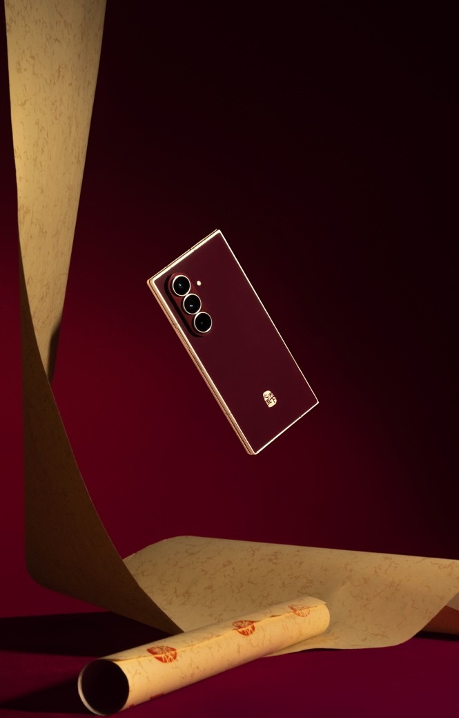 在配色层面,心系天下三星W26并未停留于单纯的视觉装饰,而是将色彩作为情绪与审美的延伸。“丹曦红”以晨光初绽为灵感,红色并不张扬,却饱含温度,在不同光线下呈现层次变化,既传达了节日的氛围,也保留了一如既往的大气和从容。金色边框则如描边一般,为红色定下边界与秩序,让整体观感在华丽与优雅之间取得恰到好处的平衡。
