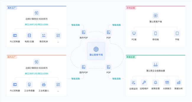 贝锐蒲公英基于SD-WAN的异地组网方案,特别是专为工业场景打造的“运维通道版”,为解决海外PLC远程调试与维护提供了一套高效、低延迟的标准化路径。