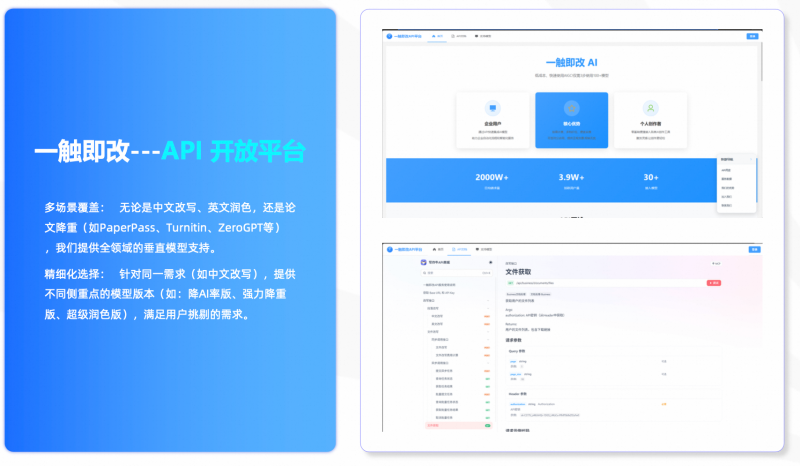 一触即改开放API接口,为学校、教育机构提供轻量级AI服务集成方案。面对教育机构及科研平台的海量需求,阿里云计算底座支撑了一触即改独有的高并发架构。系统实现了惊人的1分钟处理30,000字+的吞吐能力,且保持毫秒级响应。无论是单篇论文优化还是企业级批量内容生产,都能在“一触”之间即刻完成,重新定义了内容生产的“中国速度”。