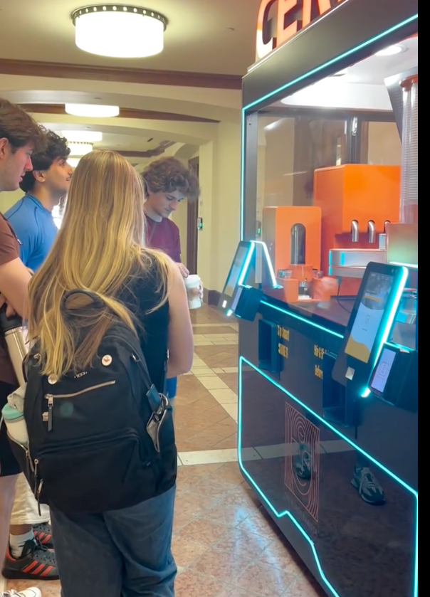 这台坐落于哈佛校园核心区域的COFE+,已成为师生们热议的“新成员”。其前卫的蓝色灯光、流线型的机身、透明的操作窗口,以及实时与顾客进行多语言互动的虚拟服务员,吸引了无数好奇与赞叹的目光。在这里,一杯杯带有哈佛盾形徽章拉花或3D打印着诺贝尔奖教授照片的定制咖啡,就像流水线一样新鲜制作出来,成为师生们、访客们手中盛载着澎湃思想的能量杯。