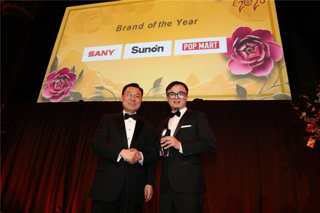 当晚,CGCC授予圣奥公司、三一集团、泡泡玛特公司“年度品牌奖”,以表彰企业对加强中美经贸关系、促进当地社区及全球经济发展作出的贡献。