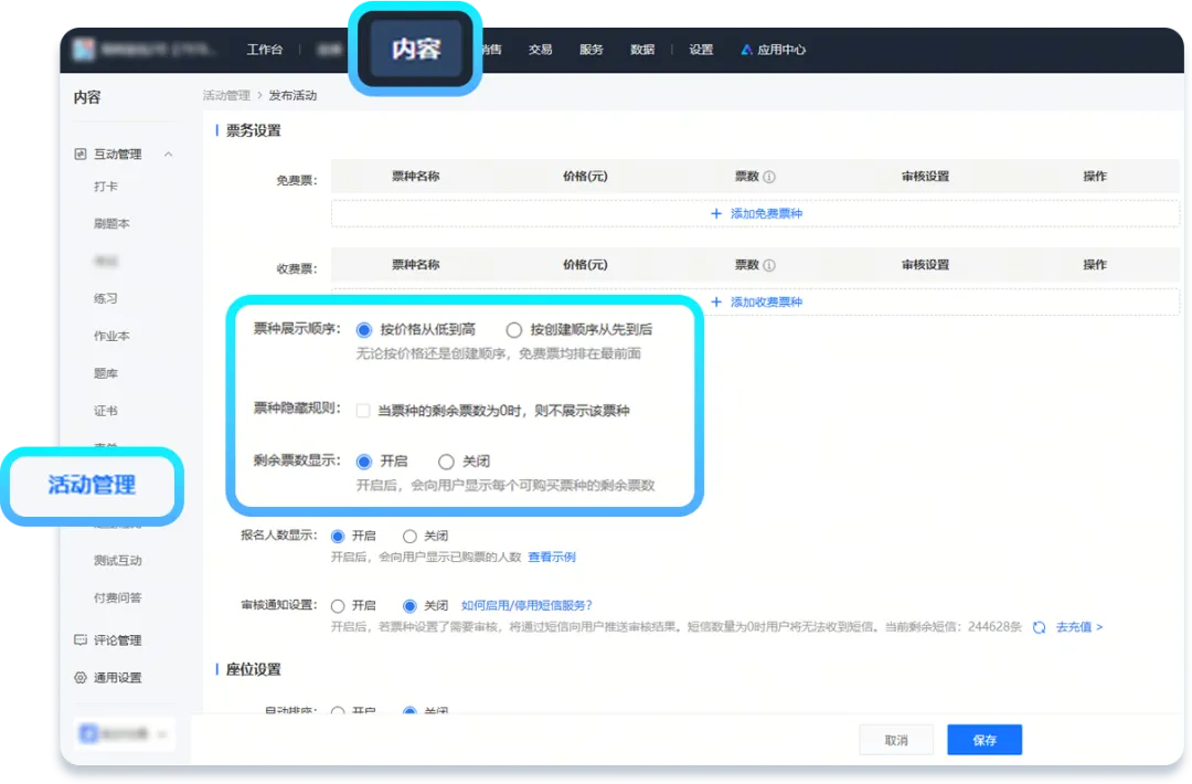 活动管理功能升级:灵活调控售票策略,优化转化体验