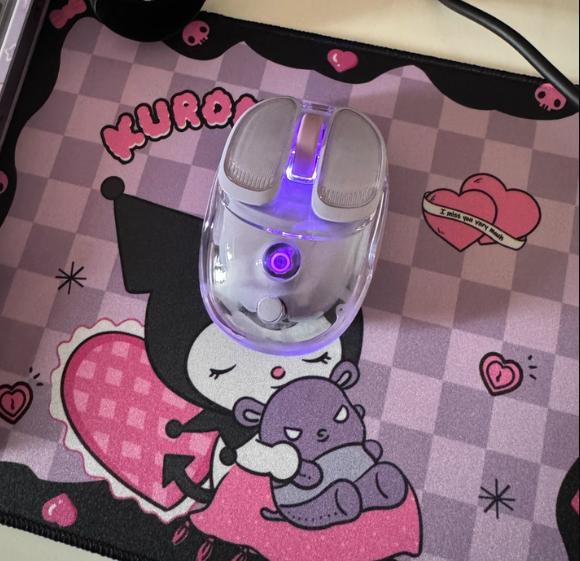 Q9的包装简洁,内含鼠标本体与说明书。其设计语言一目了然:小巧、圆润、多彩。我们拿到的是“寒酥紫”版本,低饱和度的紫色显得优雅清爽。另外提供的晶透白、星河蓝与胭脂粉,也均采用了类似的时尚配色逻辑,明显旨在吸引对桌面美学有要求的用户。
